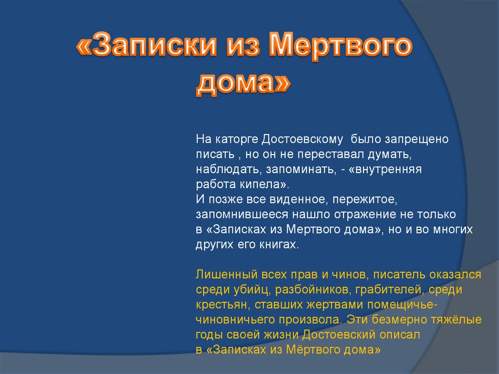 На каторге Достоевскому было запрещенописать , но он не переставал думать,