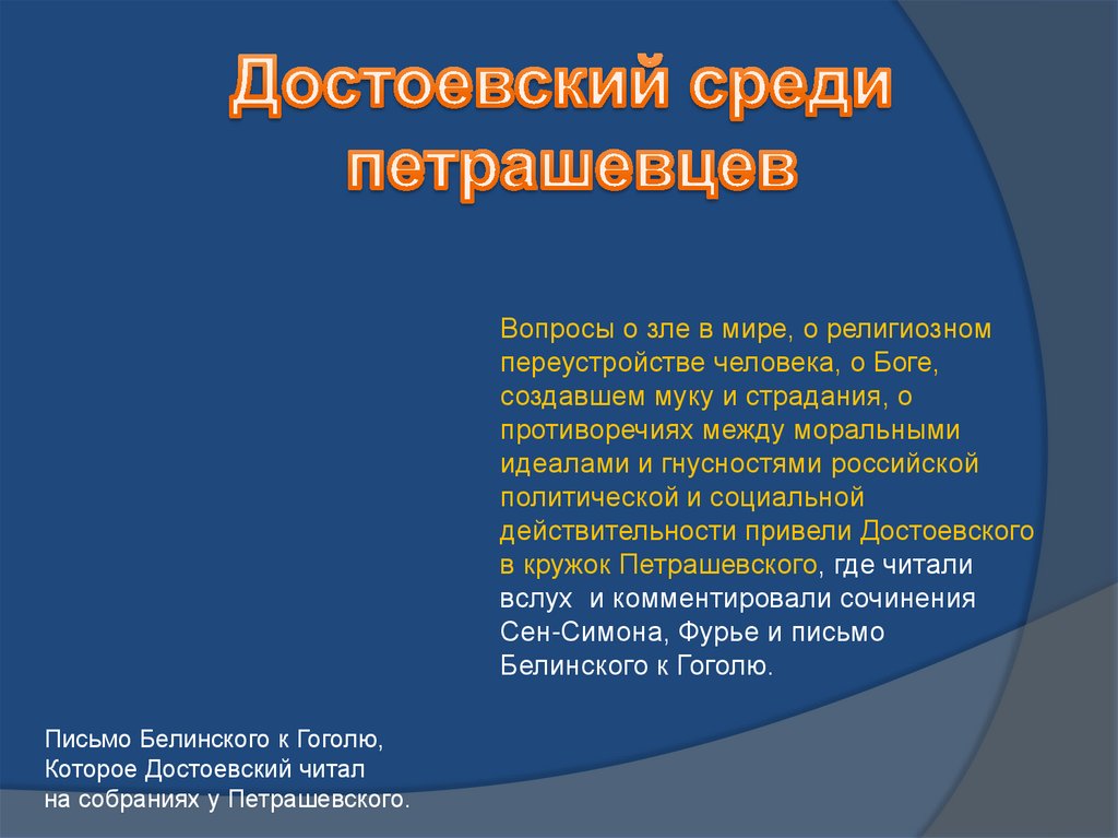 За годы каторги Достоевский «духовно возродился», общаясь«с людьми из народа, солдатами, крепостными крестьянами».