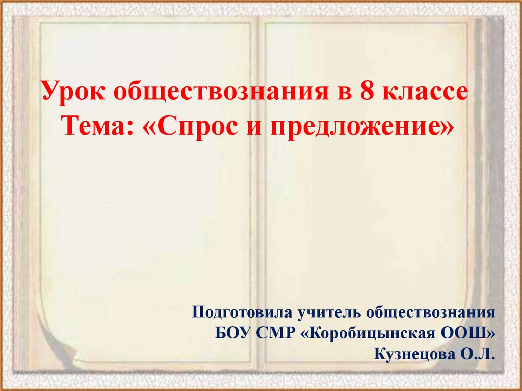 Урок обществознания в 8 классеТема: «Спрос и предложение»