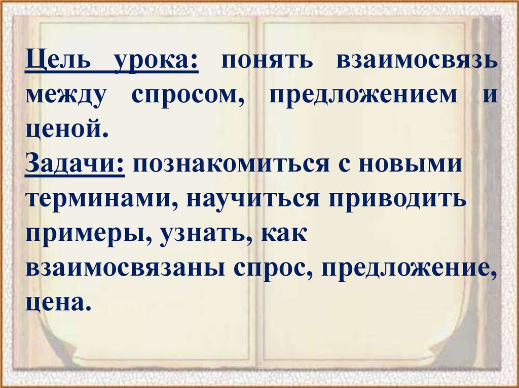 Цель урока: понять взаимосвязьмежду спросом, предложением и
