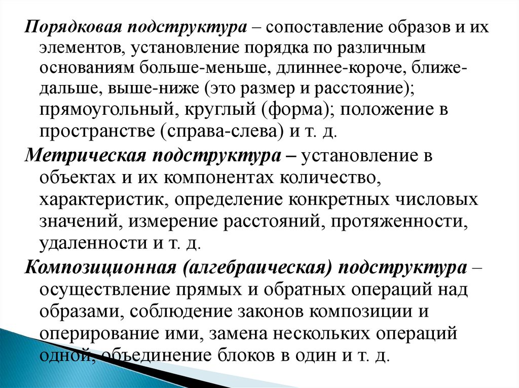 Порядковая подструктура – сопоставление образов и ихэлементов, установление порядка по различным