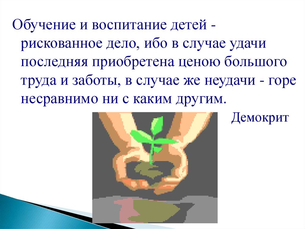 Обучение и воспитание детей рискованное дело, ибо в случае удачипоследняя приобретена ценою большого
