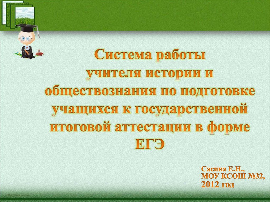 Система работы учителя истории и обществознания по подготовке учащихся к ГИА в форме ЕГЭ