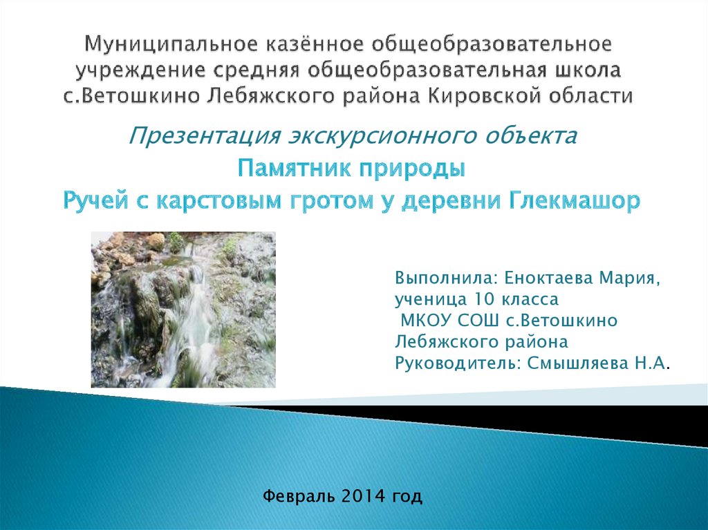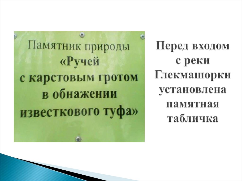 Памятник природы "Ручей с карстовым гротом у деревни Глекмашор"