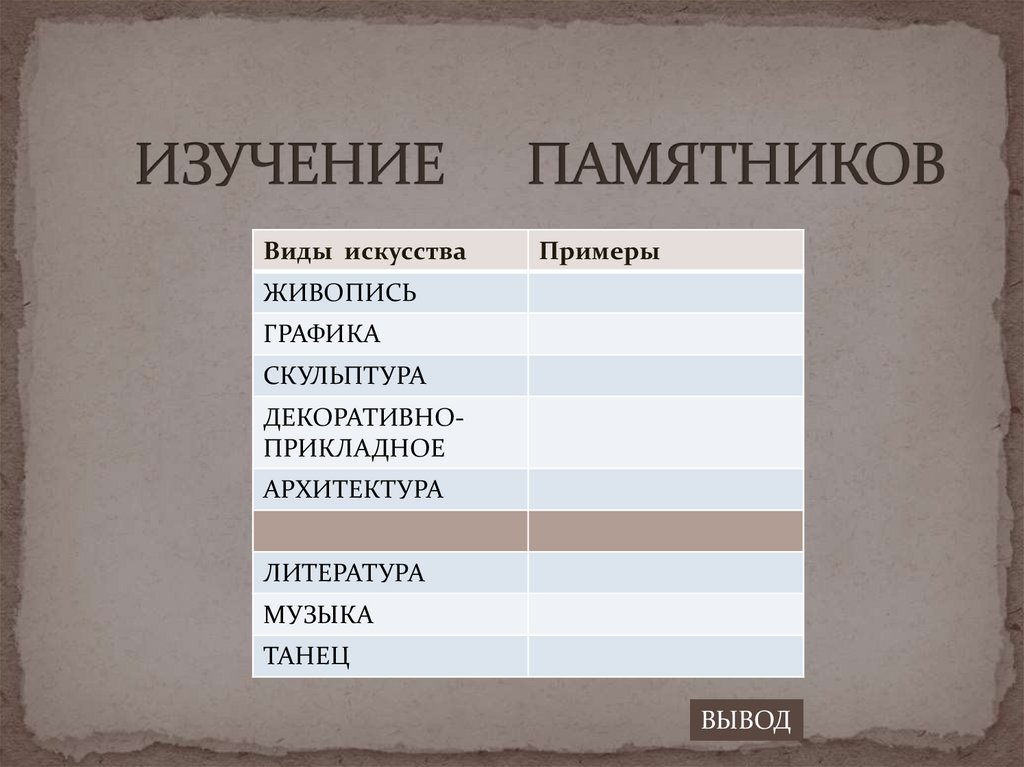 Виды искусстваПримеры