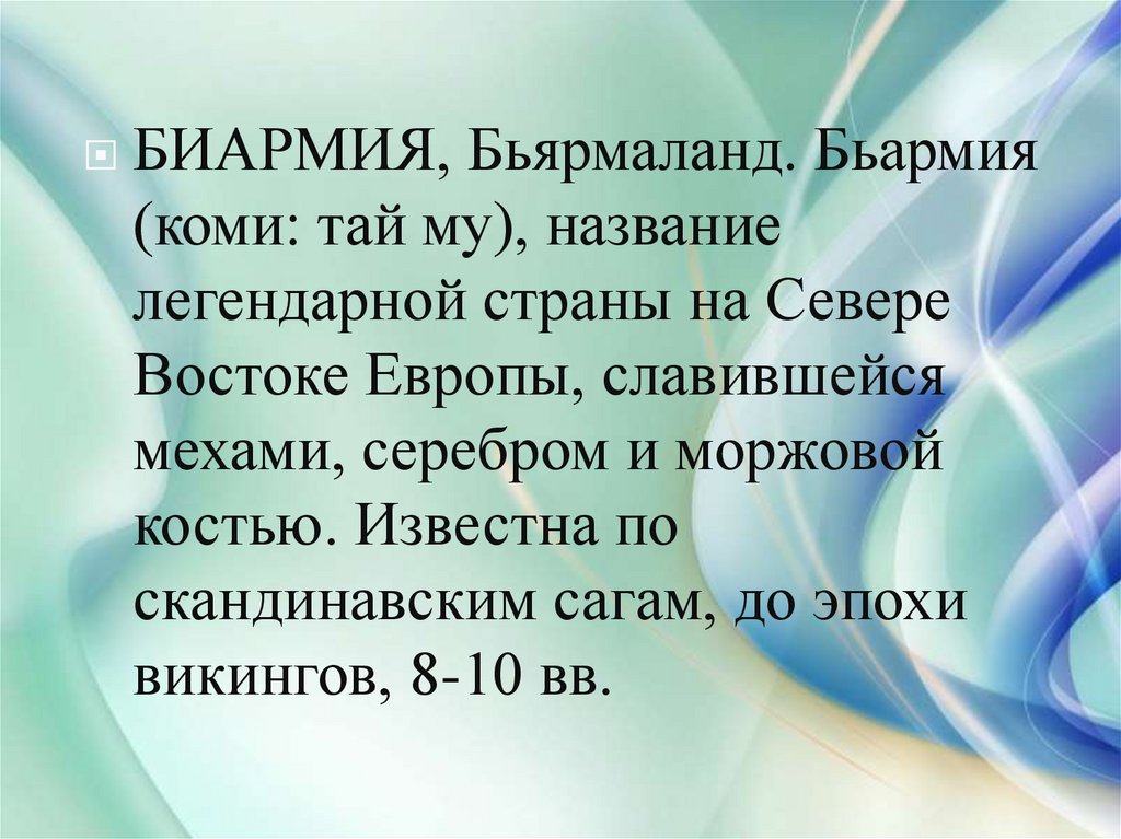 БИАРМИЯ, Бьярмаланд. Бьармия(коми: тай му), название