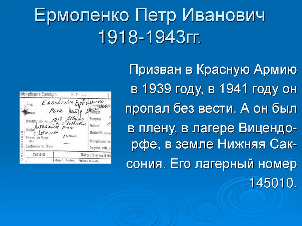 Ермоленко Петр Иванович1918-1943гг.