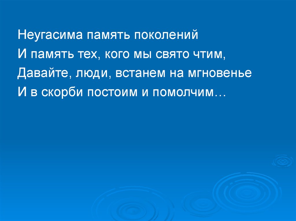 Неугасима память поколенийИ память тех, кого мы свято чтим,
