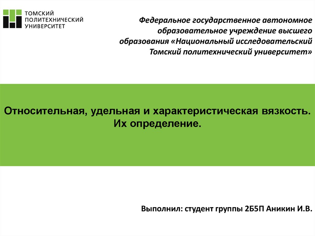 1. Федеральное государственное автономное образовательное учреждение высшего образования «Национальный исследовательский Томский полите