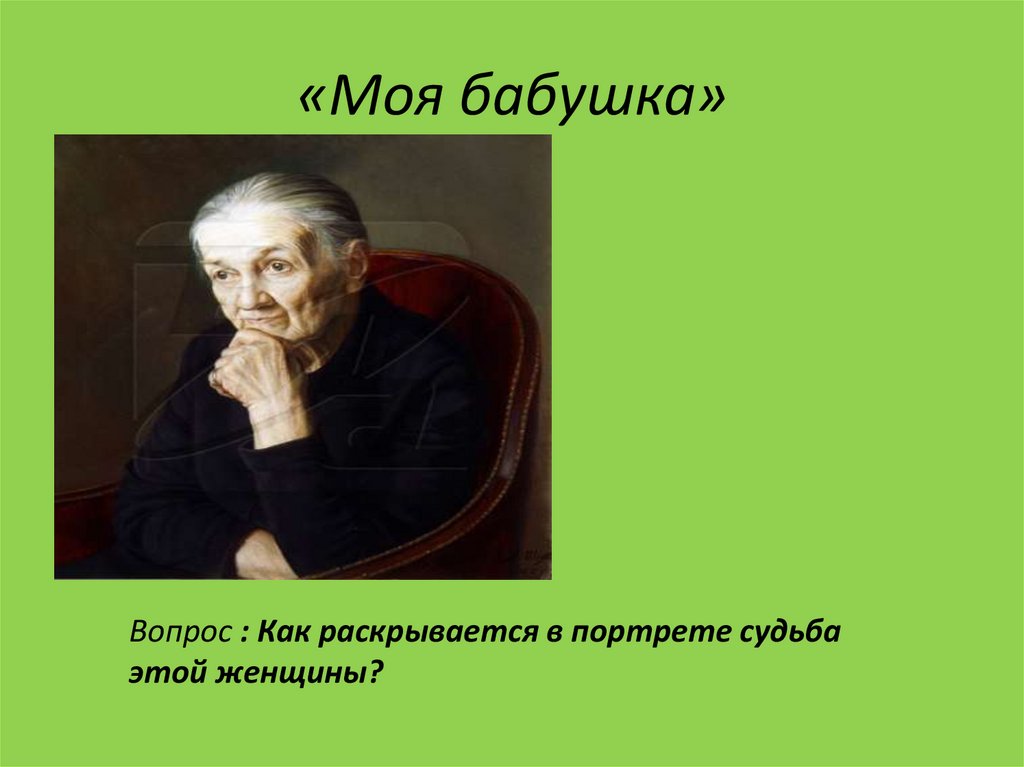 «Моя бабушка»Вопрос : Как раскрывается в портрете судьба
