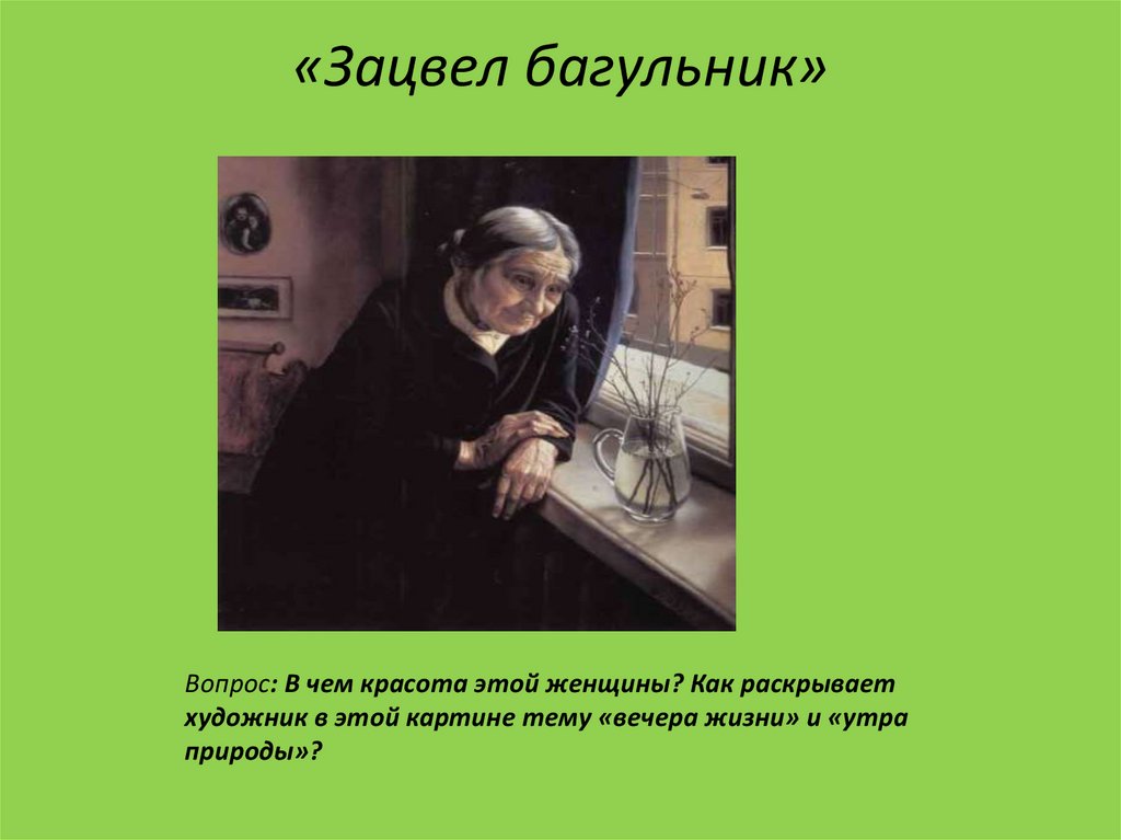 «Зацвел багульник»Вопрос: В чем красота этой женщины? Как раскрывает
