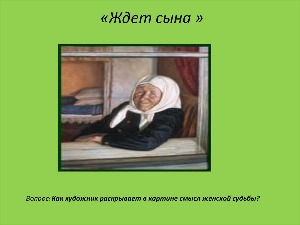 «Ждет сына »Вопрос: Как художник раскрывает в картине смысл женской судьбы?