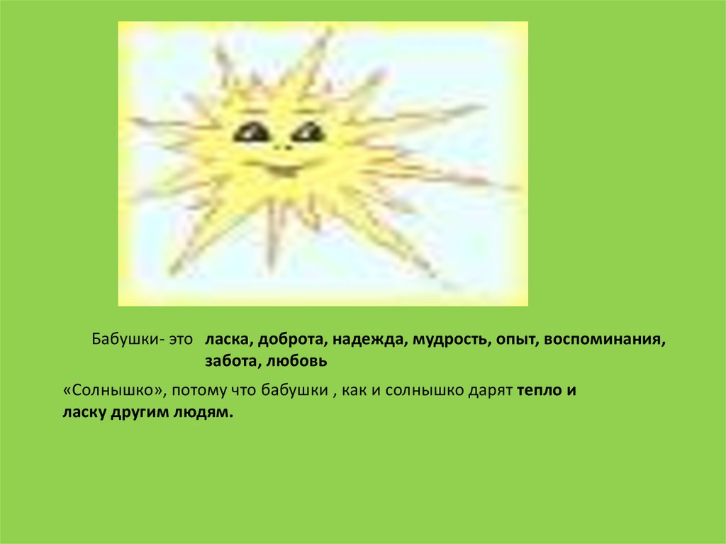 «Солнышко», потому что бабушки , как и солнышко дарят тепло и