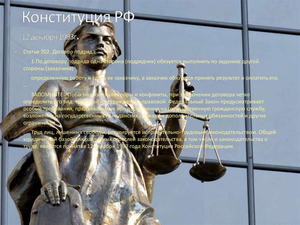 труде, является принятая 12 декабря 1993 года Конституция Российской Федерации.