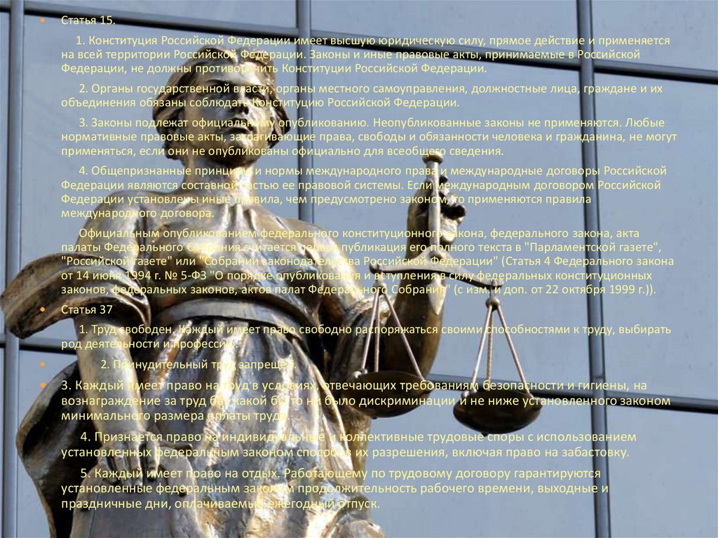 Статья 37. Труд свободен. Каждый имеет право свободно...Конституция Глава 2 Статья 37