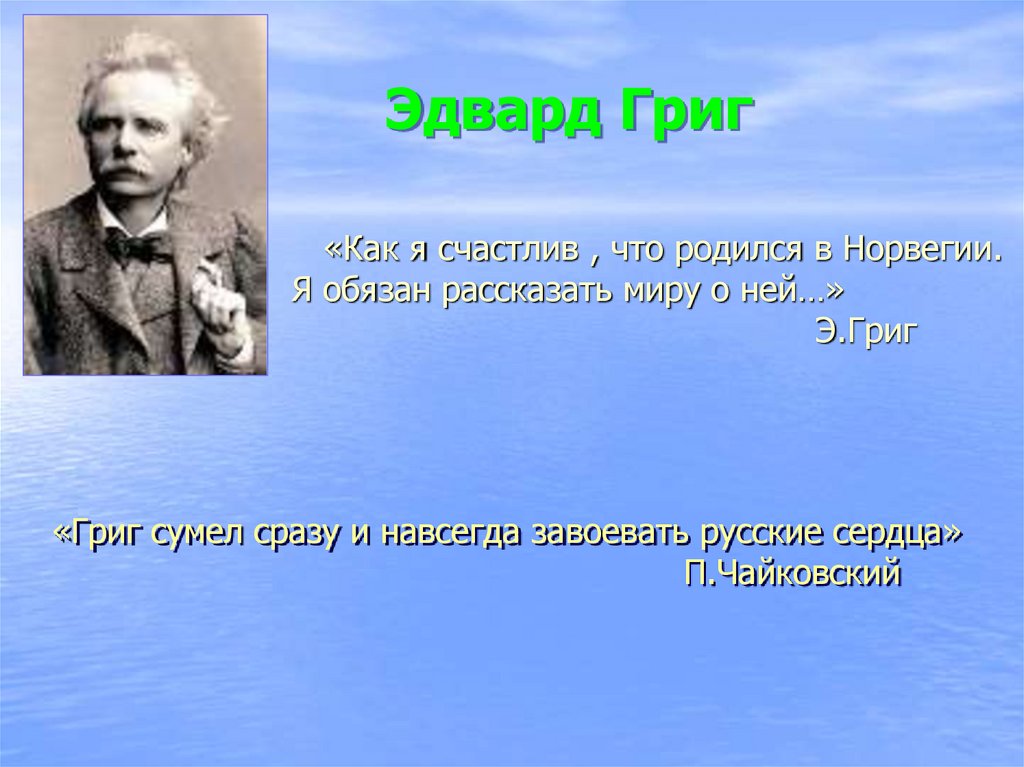 Эдвард Григ«Как я счастлив , что родился в Норвегии.