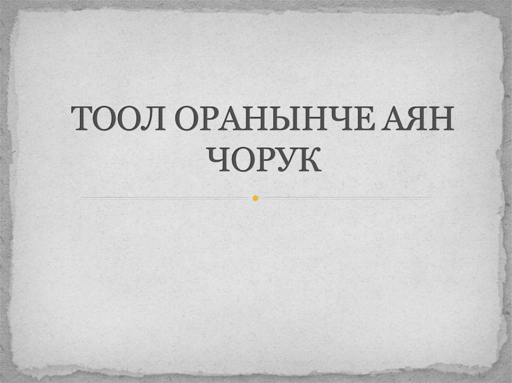 1. ТООЛ ОРАНЫНЧЕ АЯН ЧОРУК