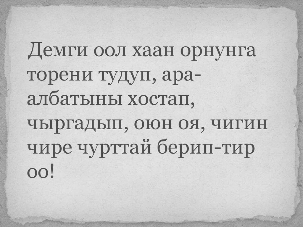 Демги оол хаан орнунгаторени тудуп, араалбатыны хостап,
