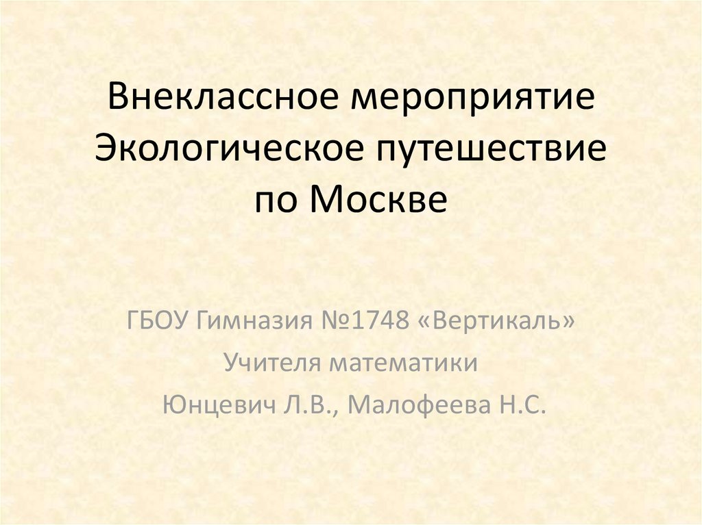 Внеклассное мероприятие "Экологическое путешествие по Москве"