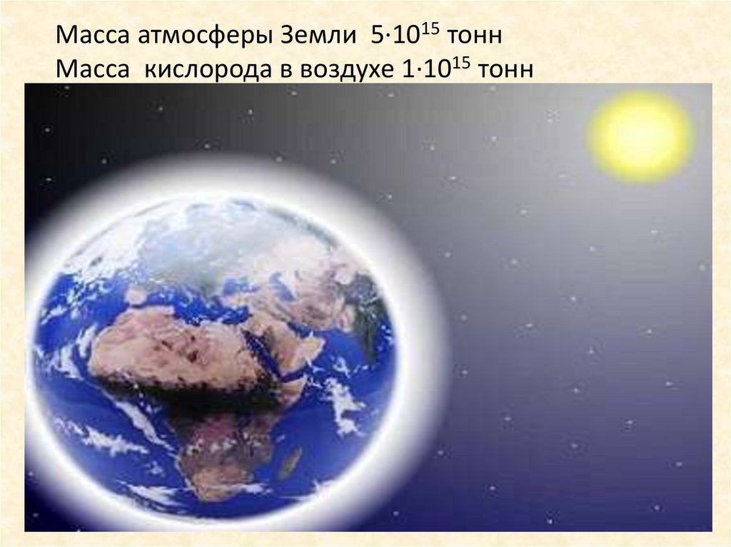 Масса атмосферы Земли 5∙1015 тоннМасса кислорода в воздухе 1∙1015 тонн