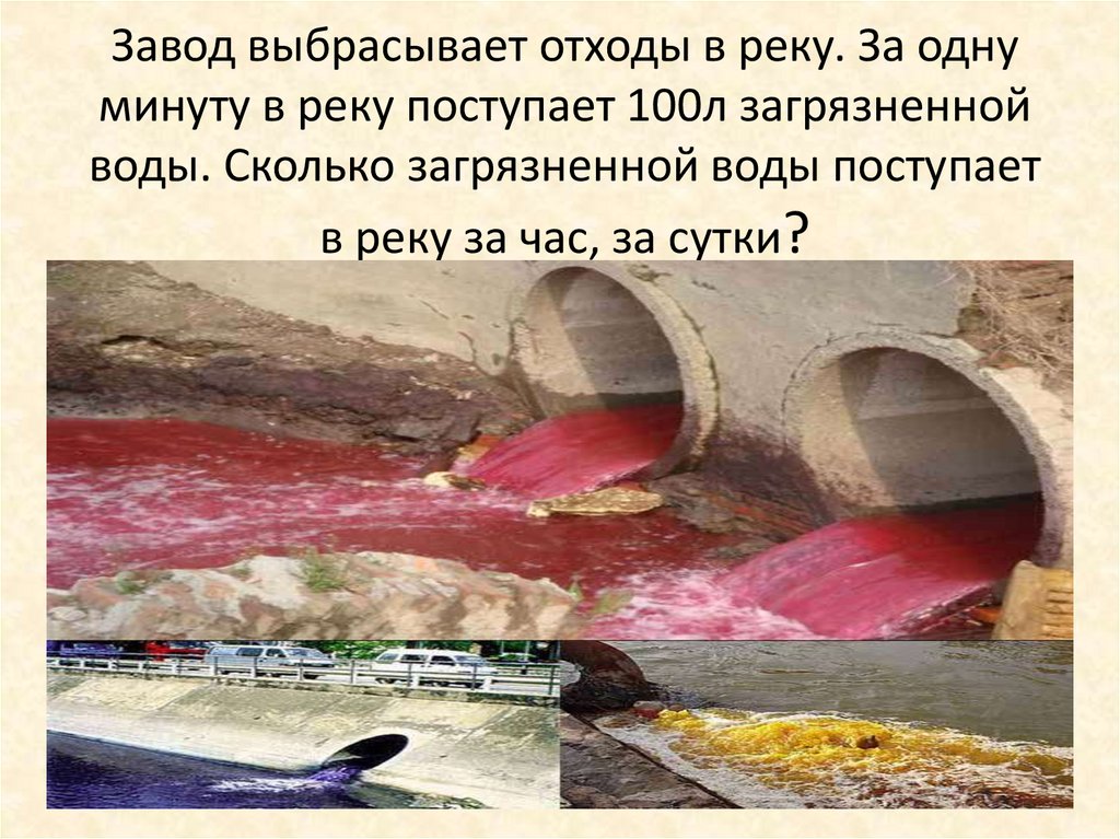 Завод выбрасывает отходы в реку. За однуминуту в реку поступает 100л загрязненной