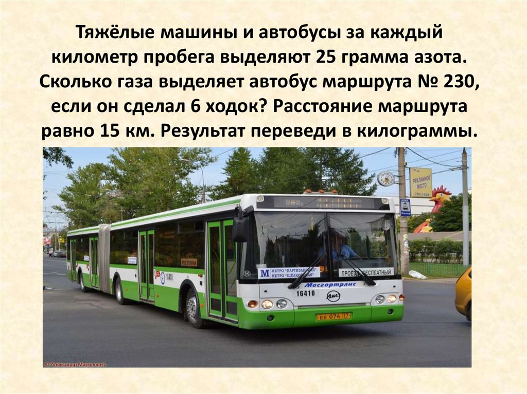 Тяжёлые машины и автобусы за каждыйкилометр пробега выделяют 25 грамма азота.