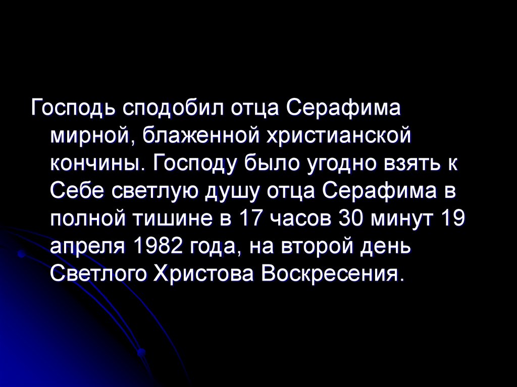 Господь сподобил отца Серафимамирной, блаженной христианской