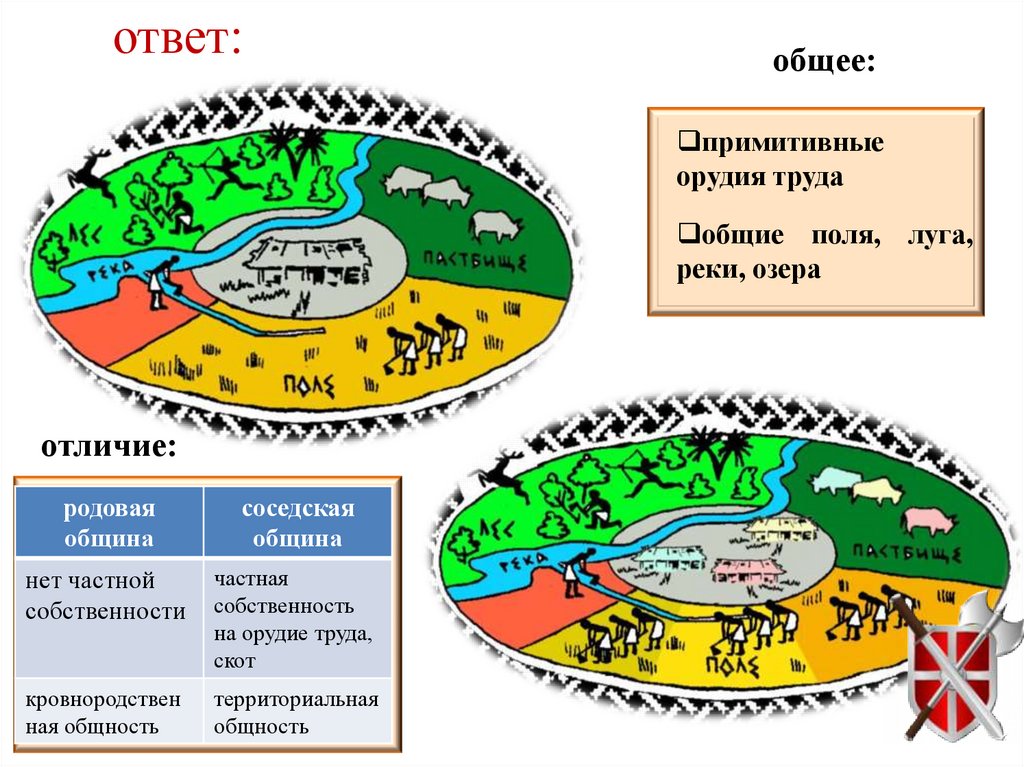 назовите две общие черты родовой общины исоседской общины и два отличия