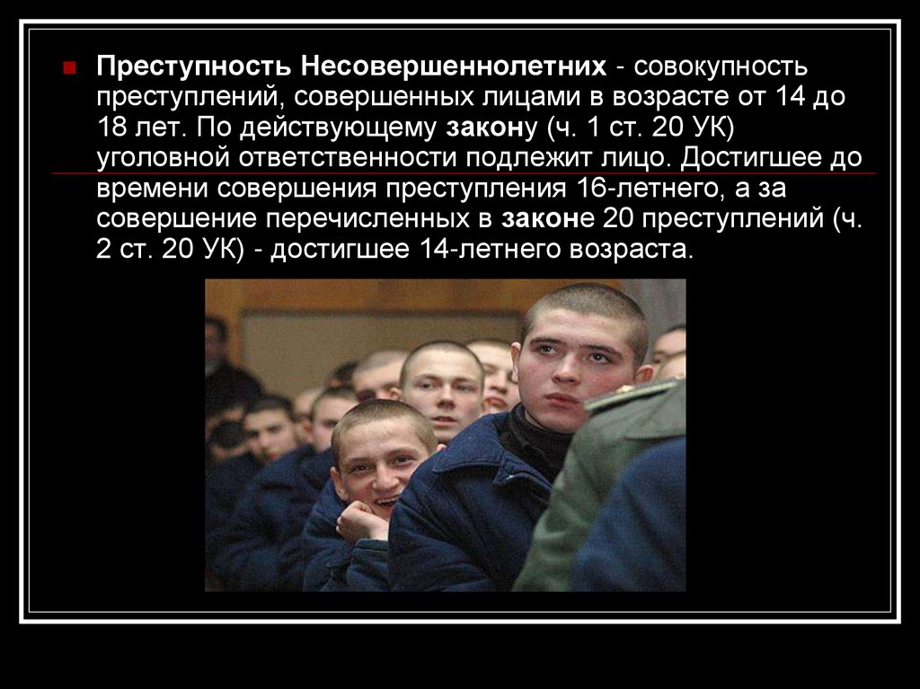 Преступность Несовершеннолетних - совокупностьпреступлений, совершенных лицами в возрасте от 14 до
