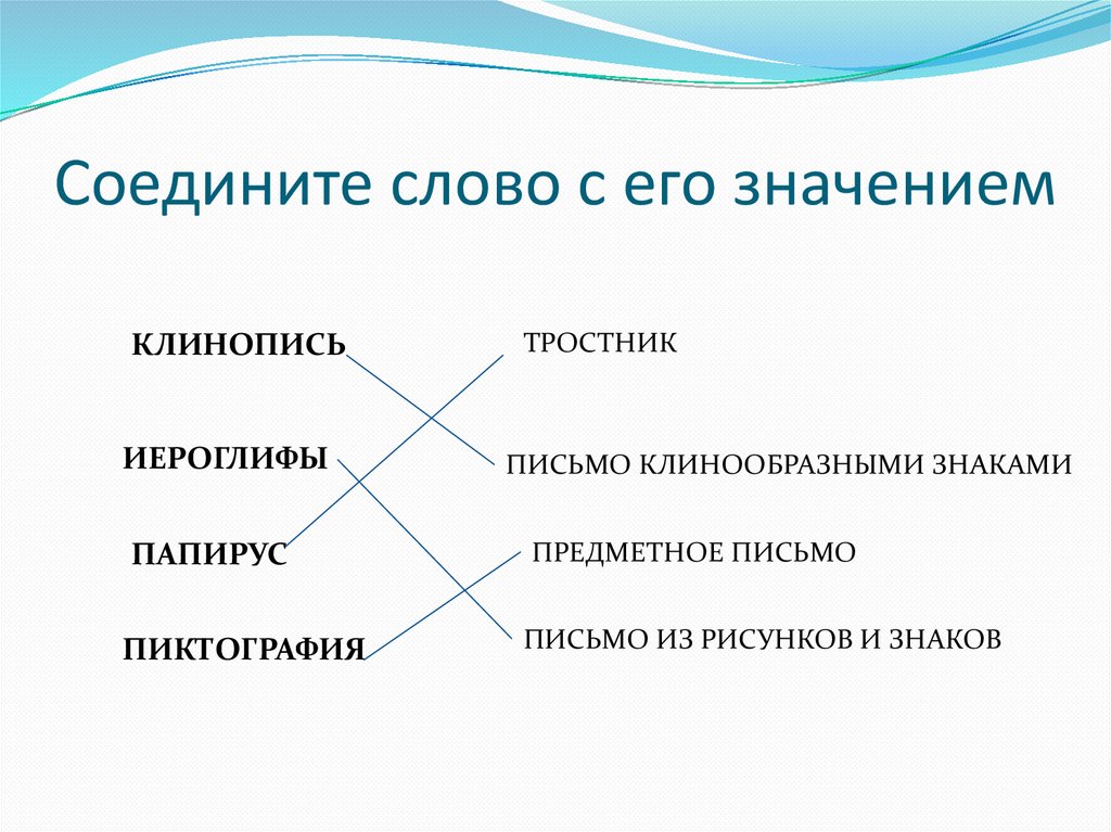 Соедините слово с его значениемКЛИНОПИСЬ