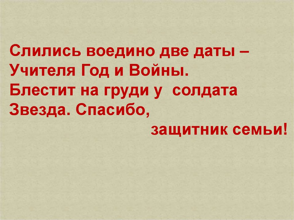 Слились воедино две даты –Учителя Год и Войны.