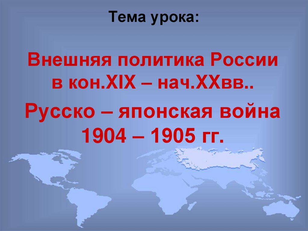 Внешняя политика России в кон. XIX – нач. XX вв. Русско-Японская война. 1904 – 1905 гг