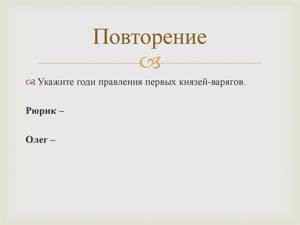 ПовторениеУкажите годи правления первых князей-варягов.