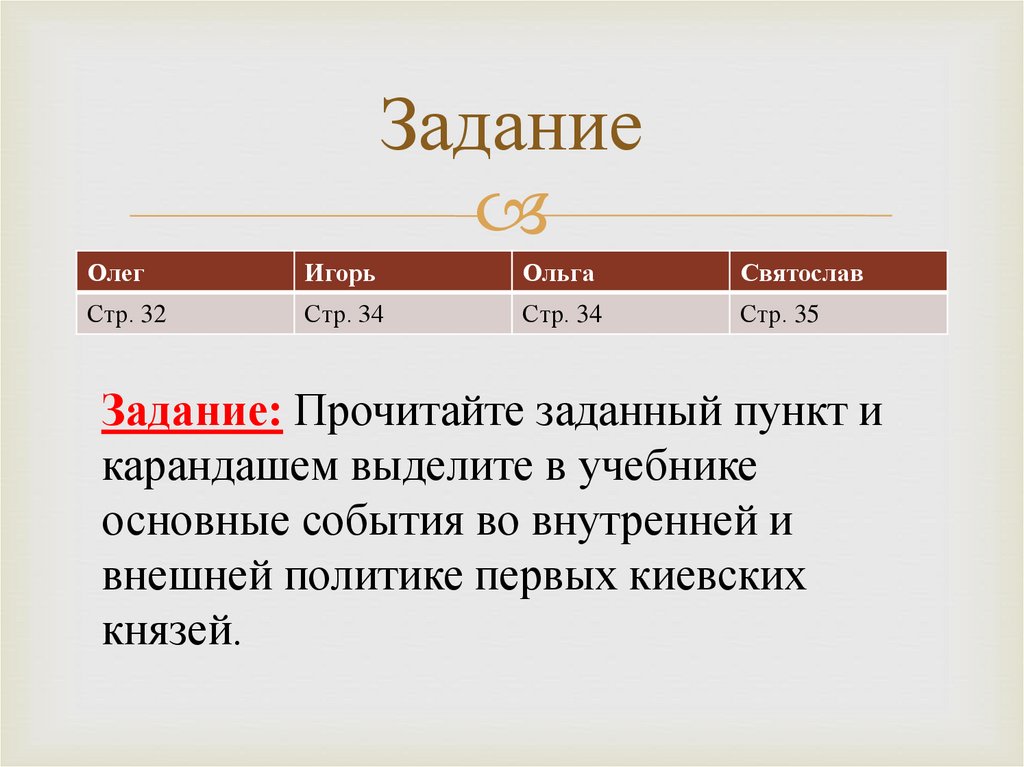 Задание: Прочитайте заданный пункт и