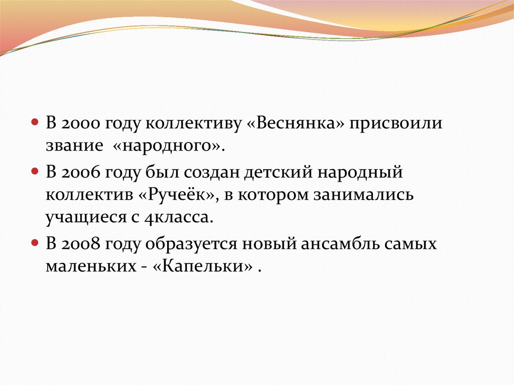 В 2000 году коллективу «Веснянка» присвоилизвание «народного».