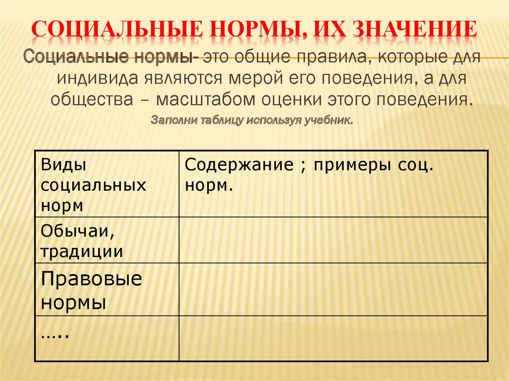 СОЦИАЛЬНЫЕ НОРМЫ, ИХ ЗНАЧЕНИЕСоциальные нормы- это общие правила, которые для