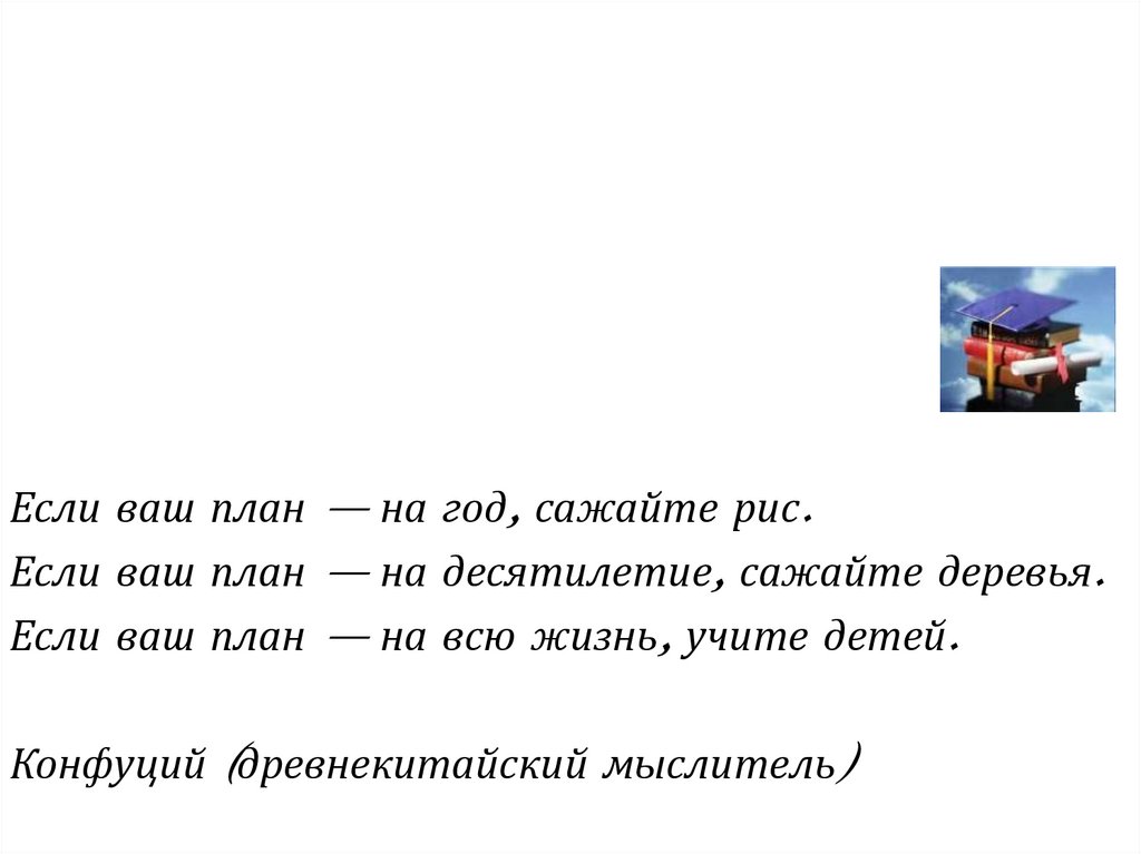 Если ваш план — на всю жизнь, учите детей.
