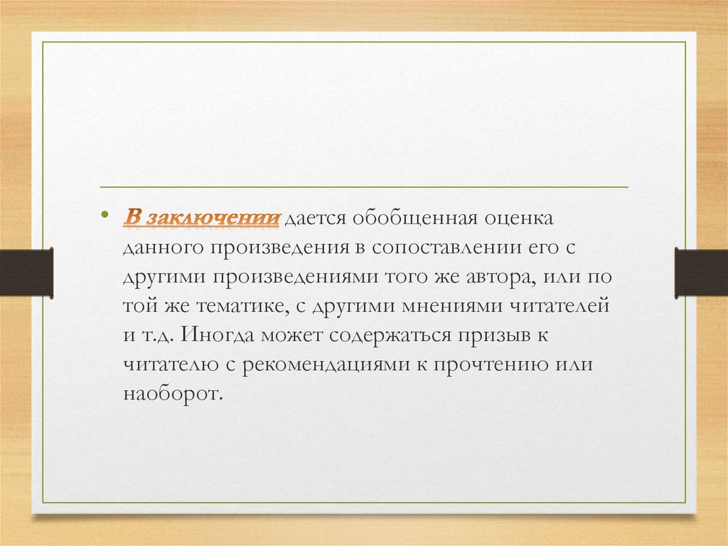 аргументированная оценка произведения,