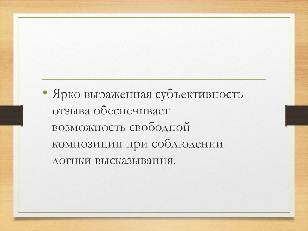 • Ярко выраженная субъективностьотзыва обеспечивает