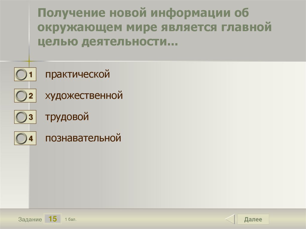 Получение новой информации обокружающем мире является главной