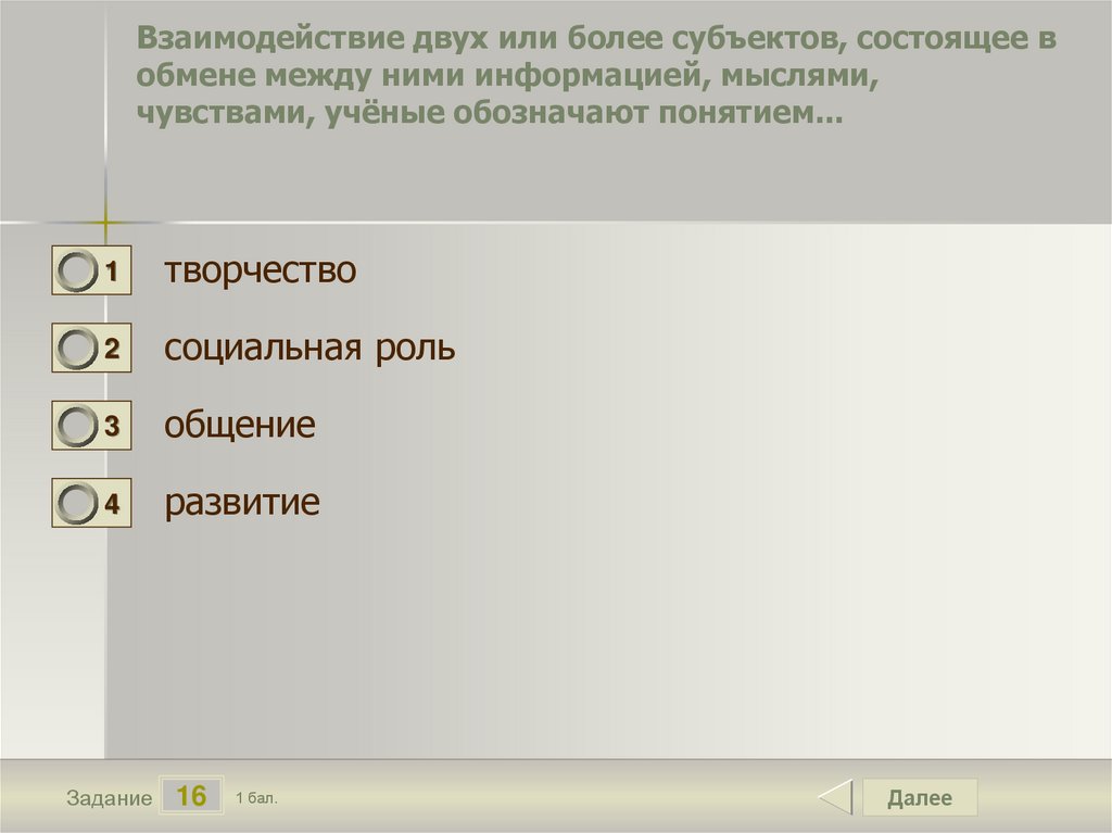 Взаимодействие двух или более субъектов, состоящее вобмене между ними информацией, мыслями,