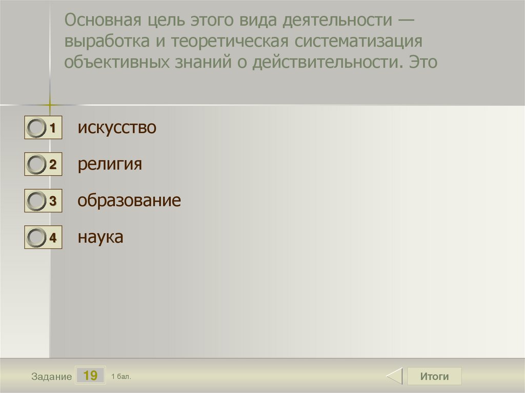 Основная цель этого вида деятельности —выработка и теоретическая систематизация