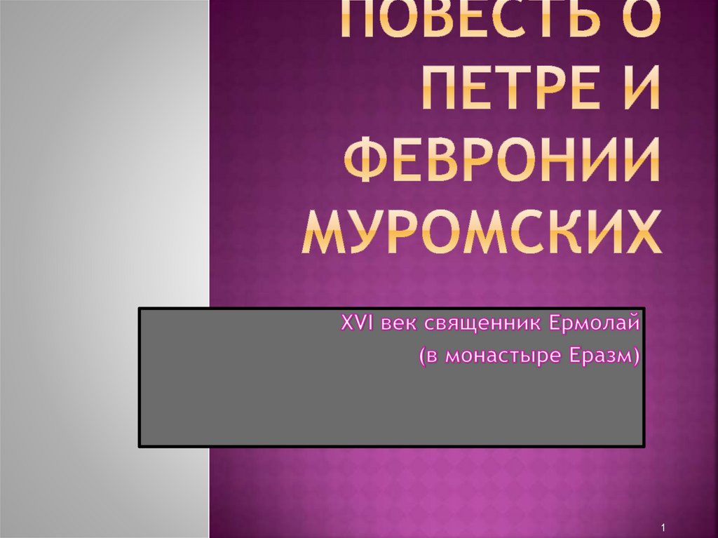 Повесть о Петре и Февронии Муромских. XVI век священник Ермолай (в монастыре Еразм)