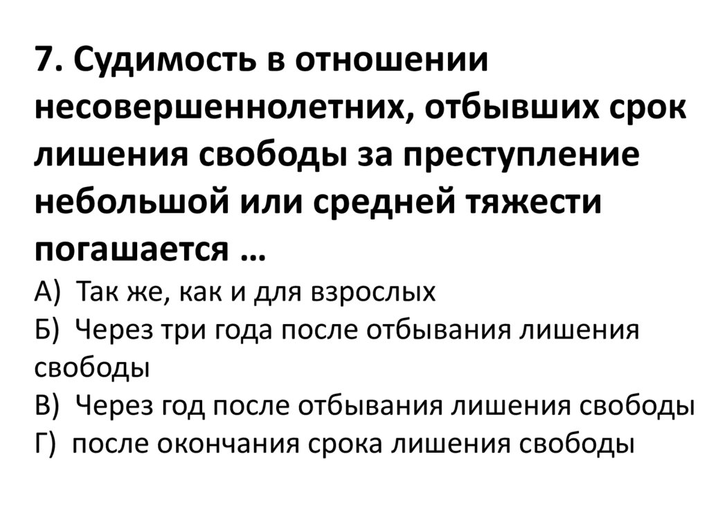 7. Судимость в отношениинесовершеннолетних, отбывших срок