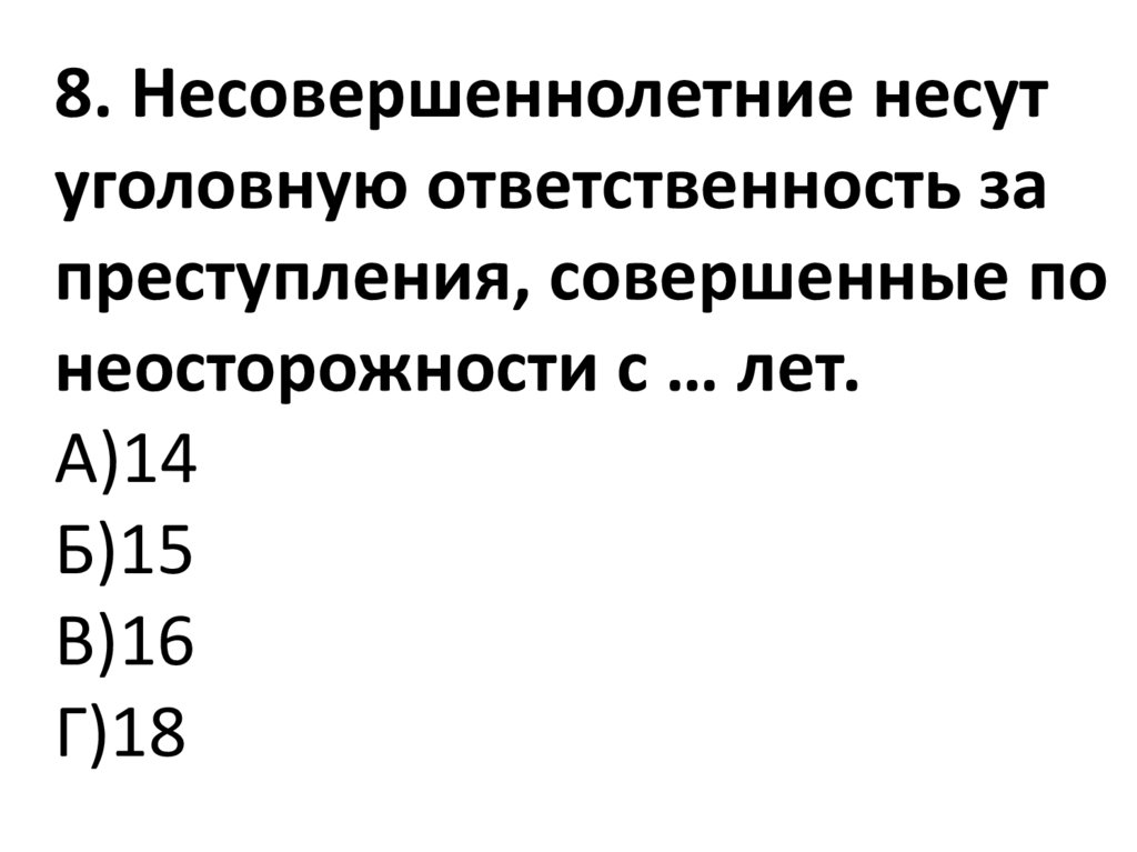 8. Несовершеннолетние несутуголовную ответственность за