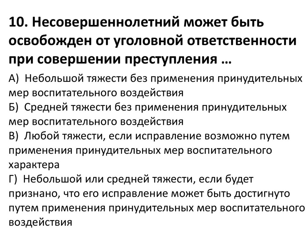 10. Несовершеннолетний может бытьосвобожден от уголовной ответственности