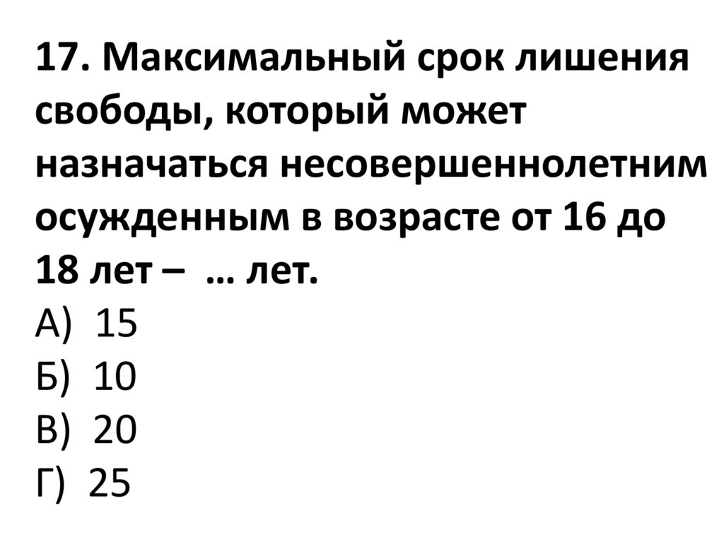 17. Максимальный срок лишениясвободы, который может