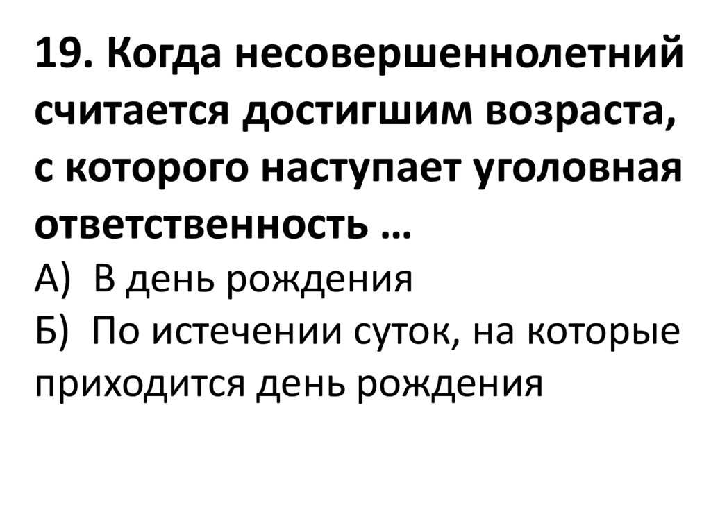 19. Когда несовершеннолетнийсчитается достигшим возраста,