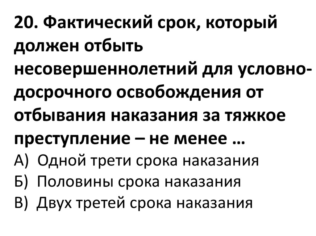 20. Фактический срок, которыйдолжен отбыть