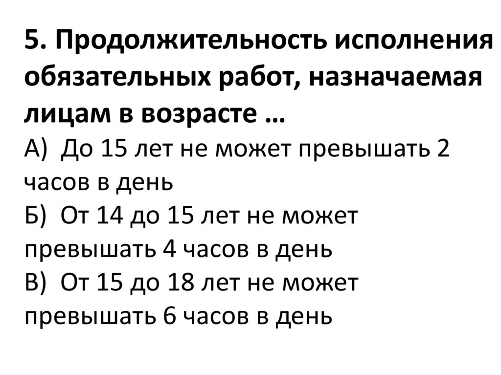 5. Продолжительность исполненияобязательных работ, назначаемая